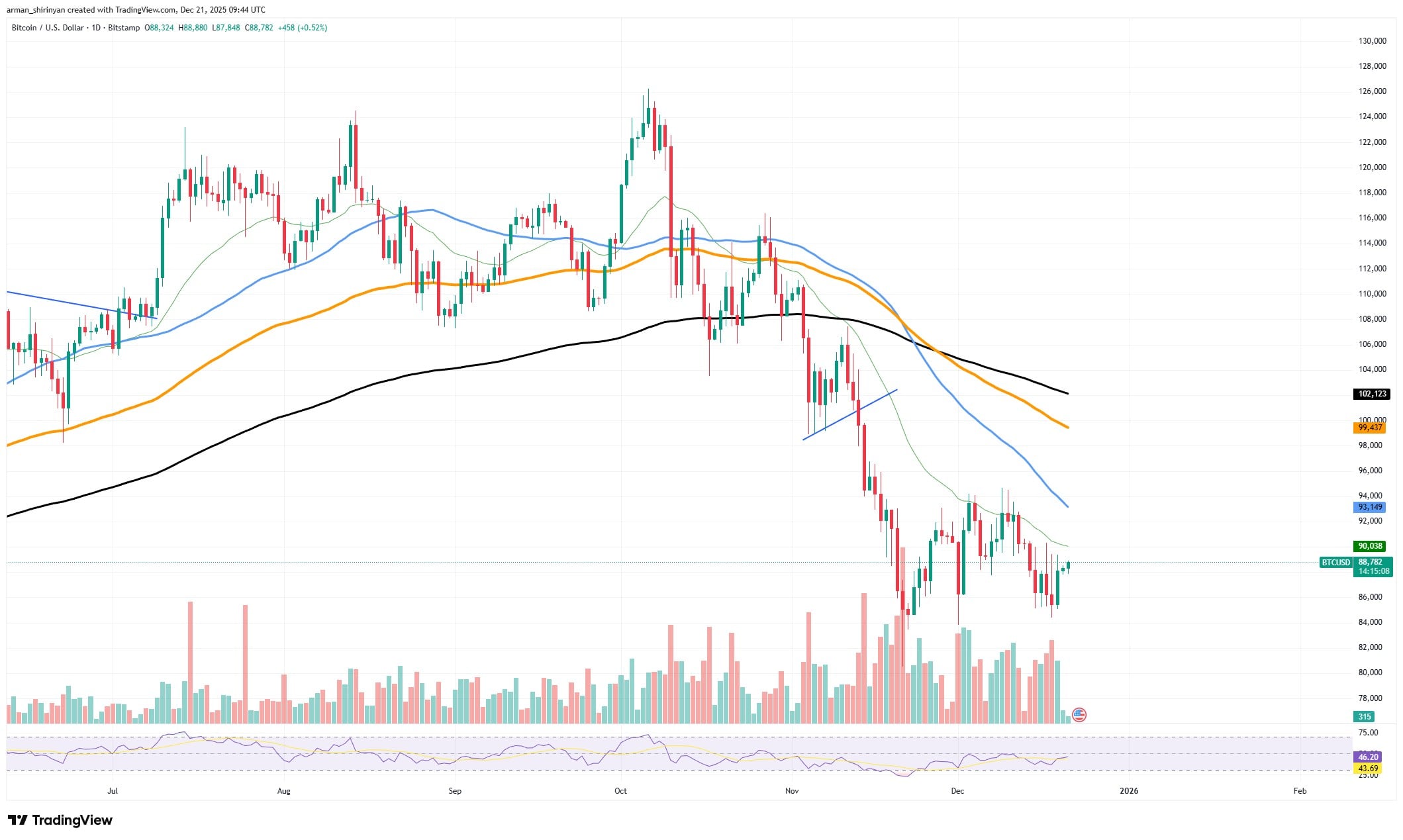 それが意味があるのなら、下落はますます…急落感が薄れてきています。ジャガイモの袋のように転がることはもうありませんが、それでも立ち上がることはできません。なんだか…ぐらついています。彼らは、ボラティリティは「圧縮」していると言います。誰かが命を搾り取っているような気がします!そしてRSIは?特に暗い虫のように底近くで立ち往生しています。それは回復ではありません。ただ…息を止めているだけだ。