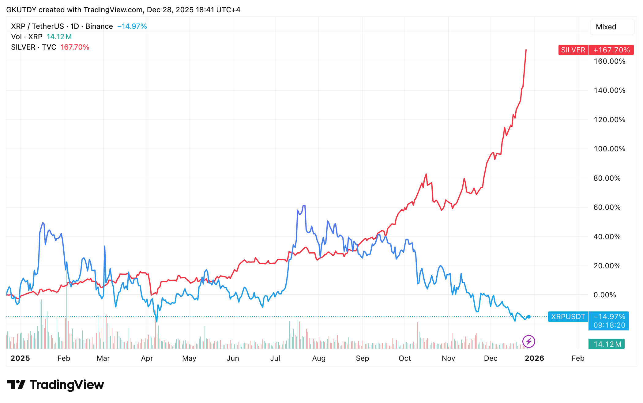 黄金のデトリタスに別れを告げましょう!あるいは、KillaXBT は霜に閉まる 12 月 27 日の X ポストで、温かく輝く金と銀の腕からビットコインの凍った中心部まで、首都の壮大な変容を予告します。これは世代を超えた交響曲であり、単なる暗号通貨の内気な小さな飛躍ではありません。アナリストは、トロイを語る吟遊詩人のような厳粛さで、市場の構造との類似点、つまり地殻変動による価格変動を示唆する幾何学的な親族関係を引き合いに出す。