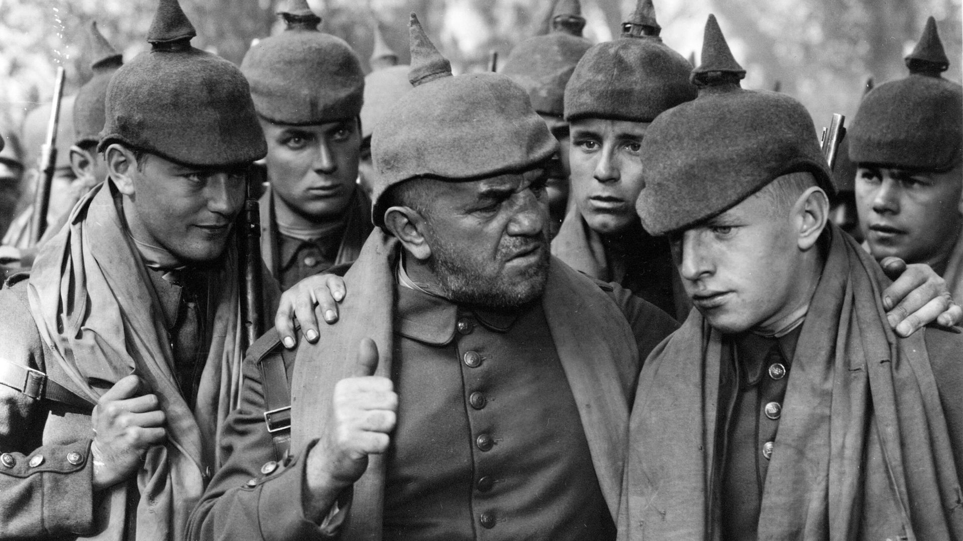 この映画は、若いドイツ兵パウル・バウマーが、彼と彼のクラスメートたちが最初は戦争という美化された考えに巻き込まれる様子を描いています。しかし、ルイス マイルストーン監督の 1930 年の映画は、英雄主義の概念を一切取り除き、塹壕戦の恐怖をリアルに描いている点で際立っています。戦闘が終わってからもずっと兵士たちに深く影響を与える死、飢え、恐怖、孤独を力強く描いています。