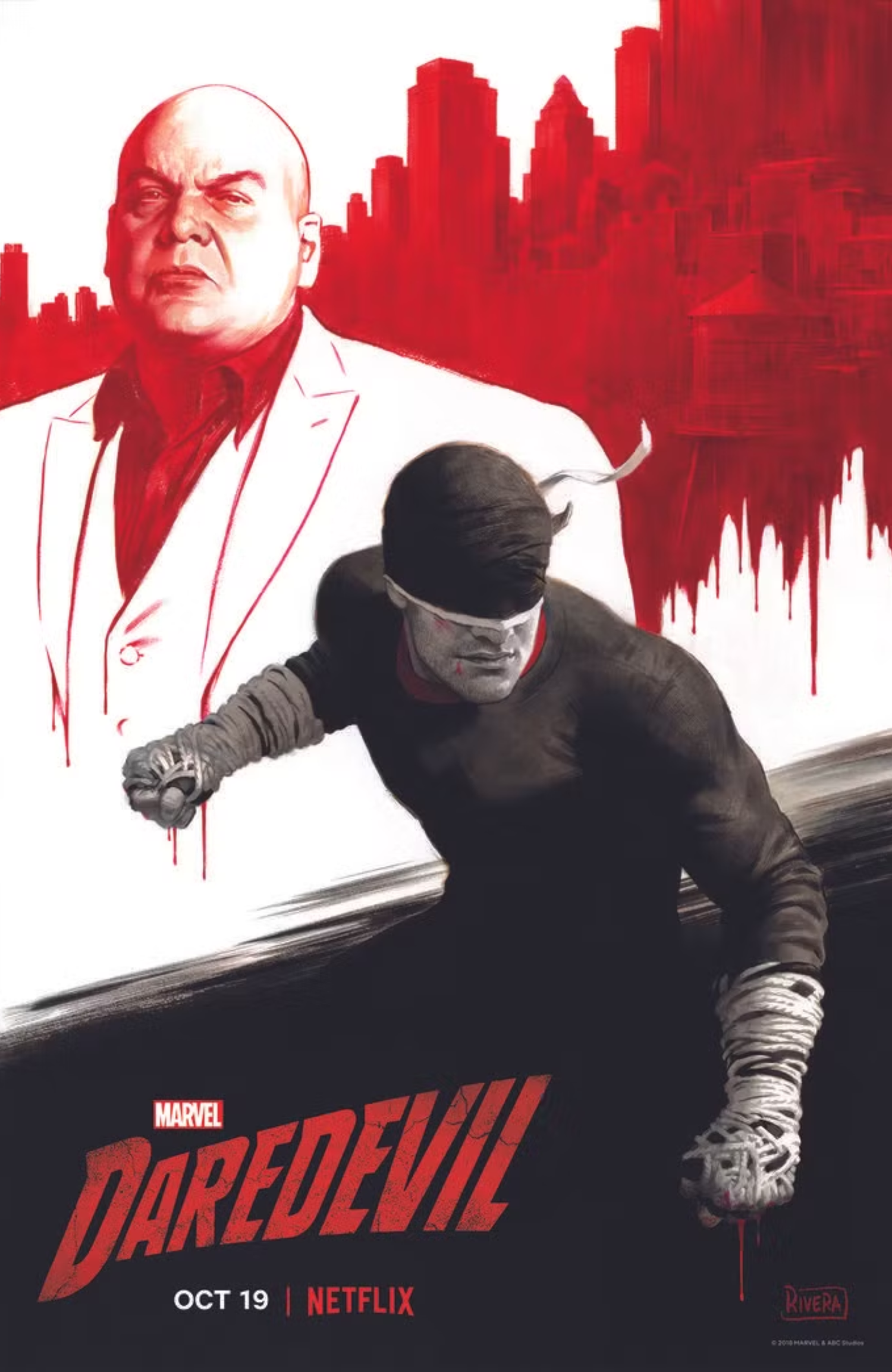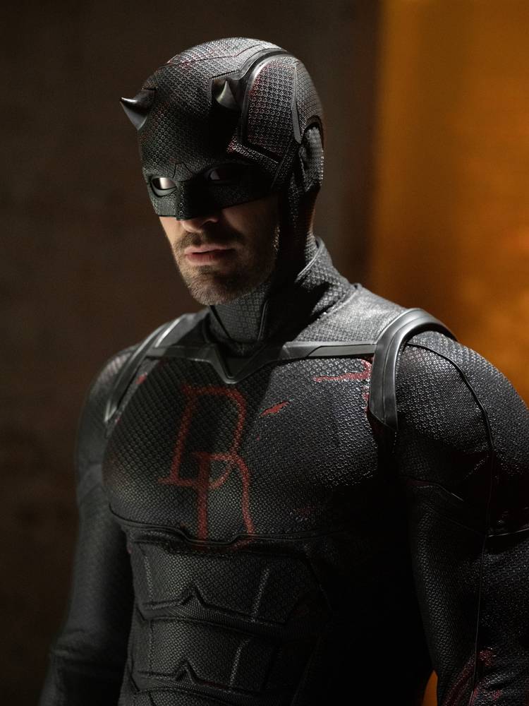 デアデビル: ボーン アゲイン のシーズン 2 では、デアデビルのスーツは黒から始まり、マスクのレンズには赤のハイライトがあり、胸にはクラシックなダブル D のシンボルが付いています。シーズンを通して、黒い塗装は戦いで傷つき、その下の赤い塗装が現れます。