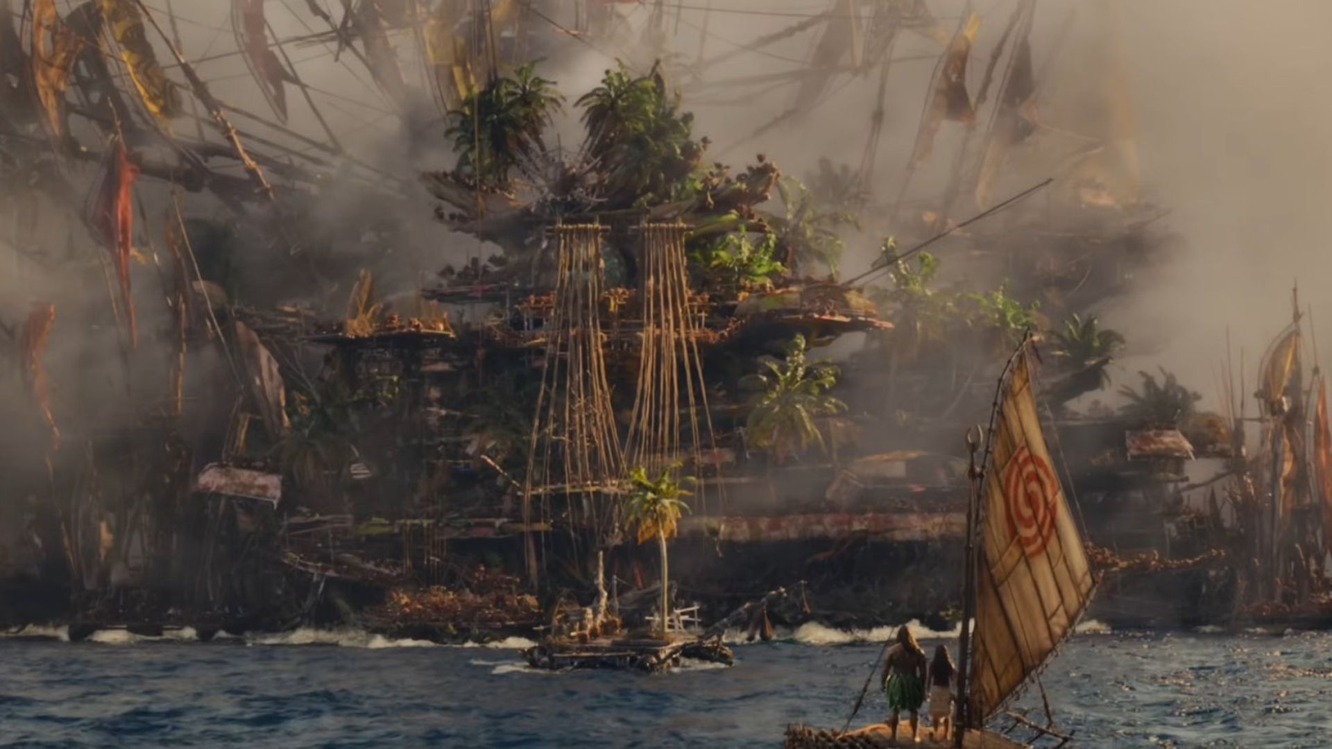 モアナとマウイの冒険中に、海賊のようなココナッツの生き物のグループであるカカモラに遭遇します。彼らは最終的に続編でモアナとマウイとチームを組むことになりますが、最初の映画では最初に重大な課題を提示します。近日公開予定の実写映画では、カカモラの船が霧の中から現れる劇的なシーンが再現されており、元のアニメーション映画よりもさらに大きく見えます。これにより、実写俳優にとってより広がりのあるエキサイティングなアクション シーケンスが作成される可能性があります。