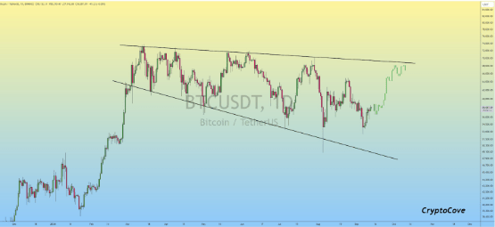 ファイビック船長は、ビットコインの動きが3月に過去最高値を付けて以来、拡大ウェッジパターンに従っていることを示す追加のグラフを提示し、楽観的な姿勢を強めた。同氏は、2024年の最終四半期頃にこのパターンで強気が爆発し、同氏の予想通り12月までにビットコインの価格が8万8000ドルから9万ドルの間に上昇する可能性があると予想している。
