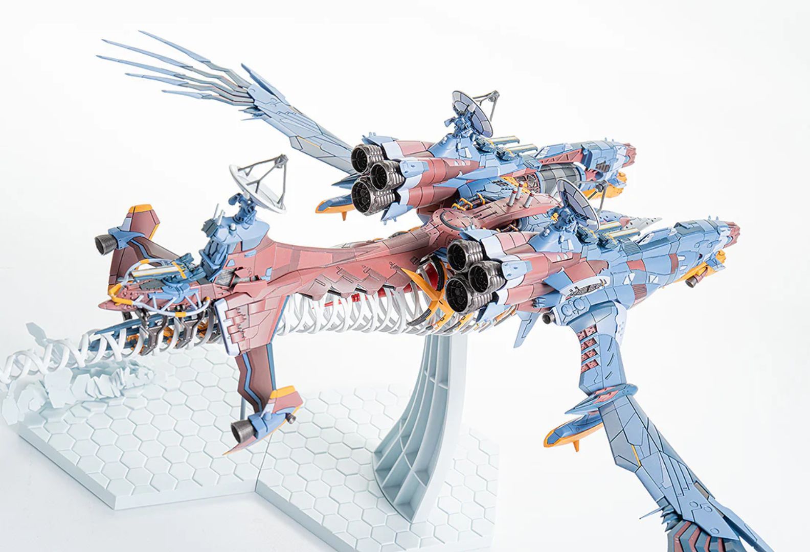 2012 年のアニメ映画に登場した AAA ワンダーが、グッドスマイル カンパニーの PLAMAX シリーズで詳細なモデルキットとして登場しました。この印象的な船は非常に大きく、幅約 15 インチ、長さ約 20 インチに及びます。そのデザインは複雑なディテールに満ちており、白い肋骨のような構造が鳥のようなユニークな外観を与えています。