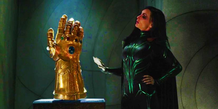 映画ソー: ラグナロク は、連続性の問題を見事に解決しました。ヘラはオーディンの隠されたコレクションを見つけると、ガントレットを偽物として無視し、それをひっくり返します。この瞬間は、ガントレットの初期バージョンがおとりであったことが正式に証明され、インフィニティ・ウォーにおけるサノスの物語が依然として意味をなしていることが保証されます。興味深いことに、偽のガントレットは右利きの人用に設計されていますが、サノスは左手を使用しており、変化に別の層が追加されています。