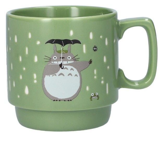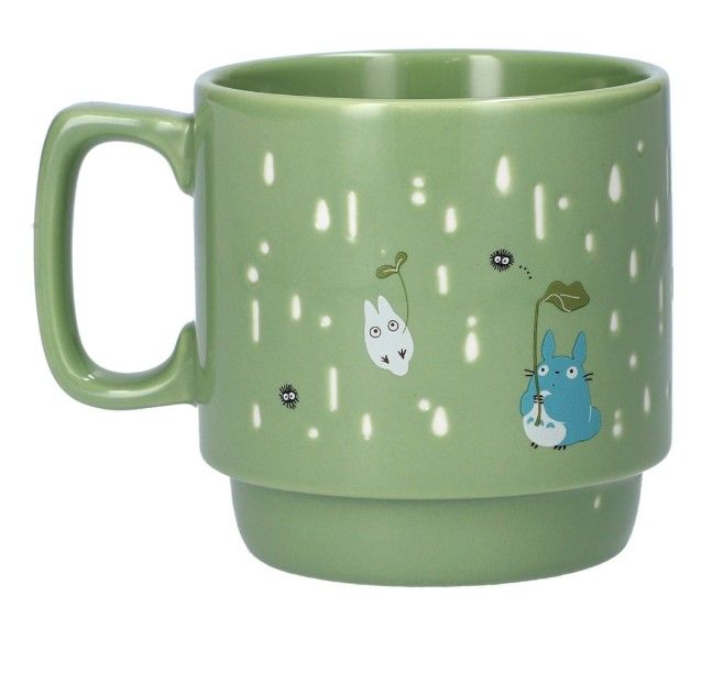 ポコポコ レインドロップ マグカップは、映画となりのトトロの人気シーンからインスピレーションを得たデザインが特徴です。トトロが微笑み、黒い傘で身を守っている様子が描かれています。これは、雨の中で父親を待っているときに、若いキャラクターのサツキが彼にプレゼントしたものです。この瞬間から彼らの心温まる友情が始まります。このデザインには、リーダーと同じように小さな葉っぱの傘を持っている小さなトトロも含まれています。