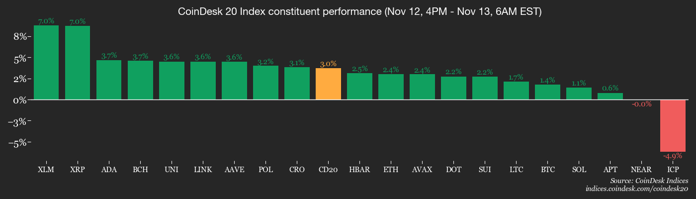 - CoinDesk 20は2.04%上昇の3,368.95(24時間:-0.81%)。楽しい良いショー! 🎩