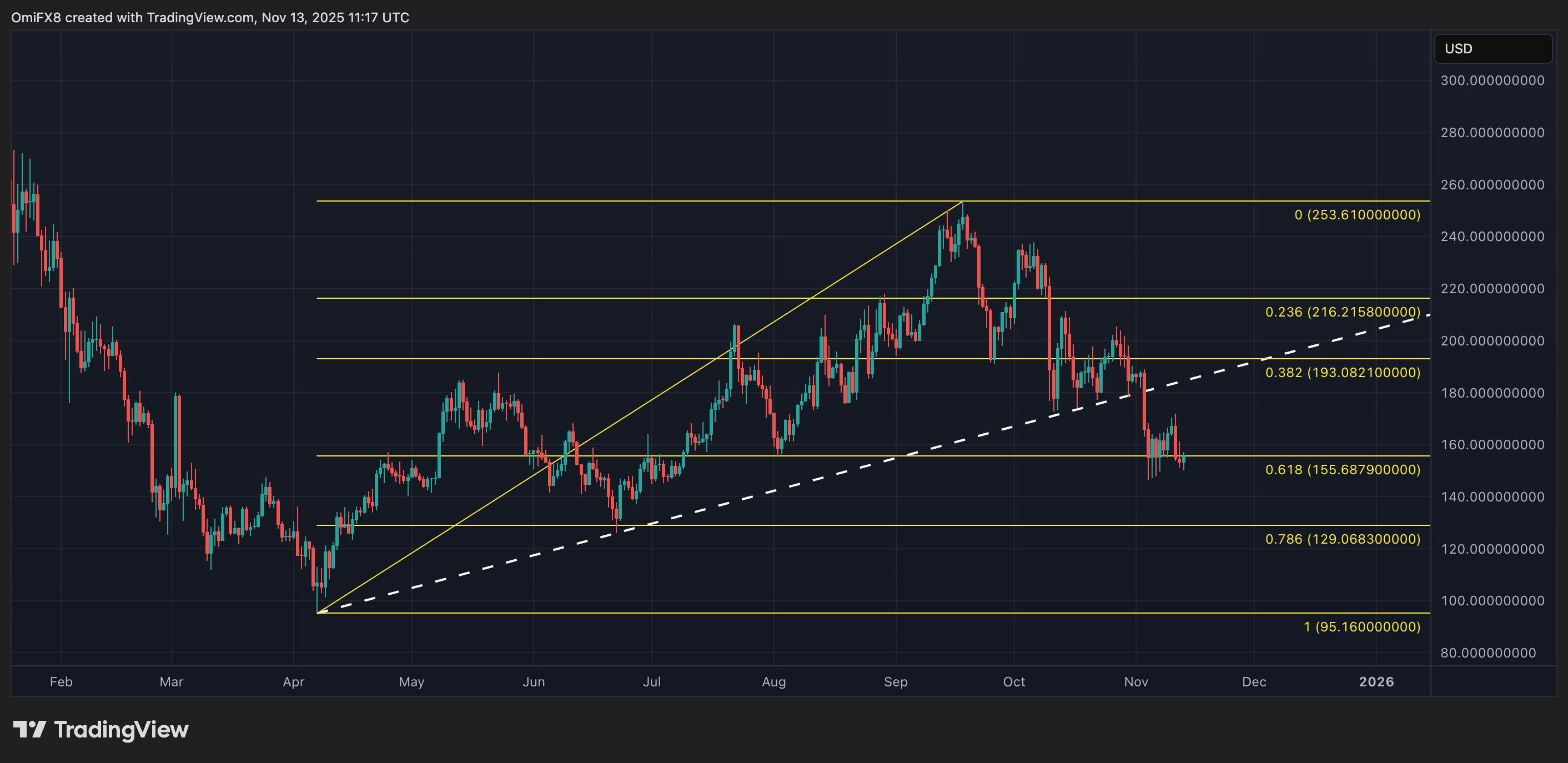 - SOL は 9 月中旬以降、高値を切り下げ、安値を切り下げてきました。これは弱気傾向です、おじさん。 📉
