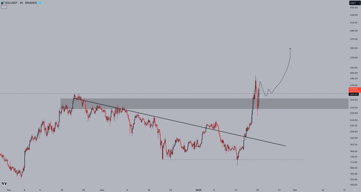 現在、ソラナの価値は約264ドルで、11月下旬に達成したかつての最高価格に近づいている。ソラナがさらに上昇し、新高値を樹立する可能性があるため、この大幅な水準はトレーダーの注目を集めている。過去 2 日間、ソラナは 229 ドルから 295 ドルの間で変動しており、かなりのボラティリティを示しており、投資家の間で不安と興奮の両方を引き起こしています。