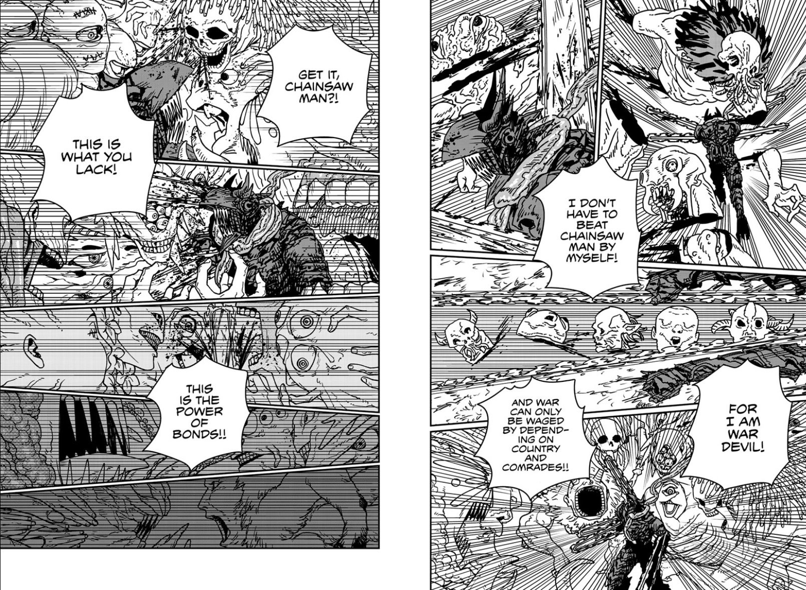 著者の藤本タツキはチェンソーマン全体を通して、アメリカの植民地化と戦争の歴史に頻繁に言及し、批判してきました。シリーズの最初の部分でさえ、米国は銃の悪魔の作品の大部分を保持しており、米国大統領と悪魔との取引により、すべての国民の寿命が短くなりました。この重要なメッセージは、物語が戦争の悪魔の力を探求するにつれてさらに顕著になりました。