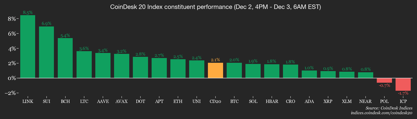 - CoinDesk 20 は 1.82% 上昇し、2,984.67 (24 時間: +7.99%) – アルトコインの合唱団がハレルヤを歌います!
