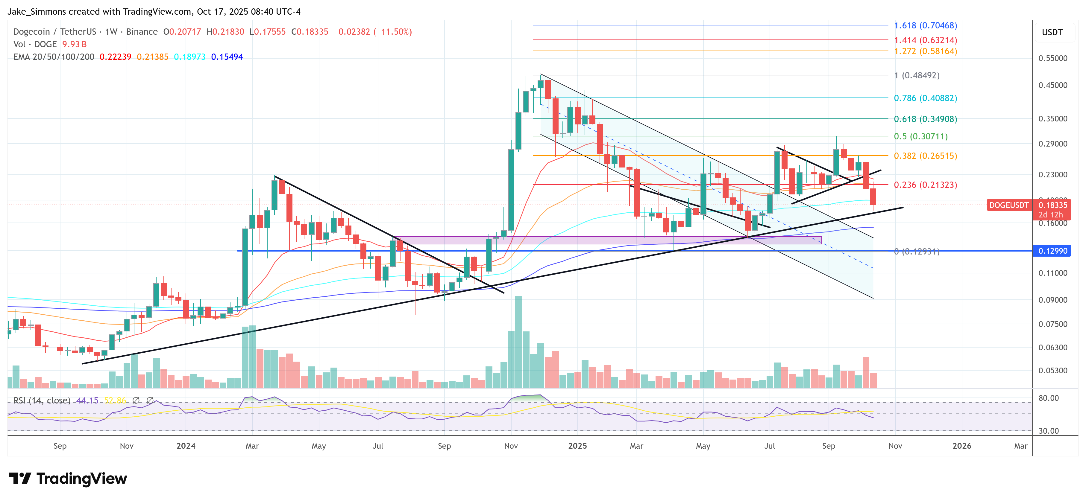 VisionPulsed ではタイミングがすべてです。同氏にとって、10月22日から23日までの安値がさらに上昇したことは確証となる。彼は、トレンドラインが損なわれていない限り、それが 16 セントであろうと 18 セントであろうと気にしません。同氏は「最終的に安値をさらに上回る水準になれば、トレンドラインを維持することになるだろう」と述べた。しかし、もしドージコインがこれを果たせなかったとしても…警告しなかったとは言わないでください。 「11月に暴落してしまったら、上がることはない。それはとても簡単なことだ」と、暗号通貨のノストラダムスのように彼は言う。