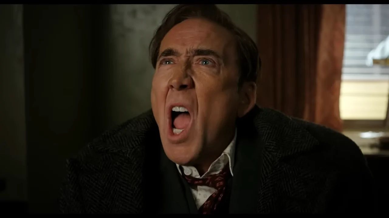 ラモーン・モリス演じるロビー・ロバートソンはベンに何が起こっているのか質問します。その後、予告編では一連の不穏な画像が点滅します。その直後、ニコラス・ケイジが現れ、バーで喧嘩になり、泥酔していたと主張して、乱れた容姿をふざけて誇張した。