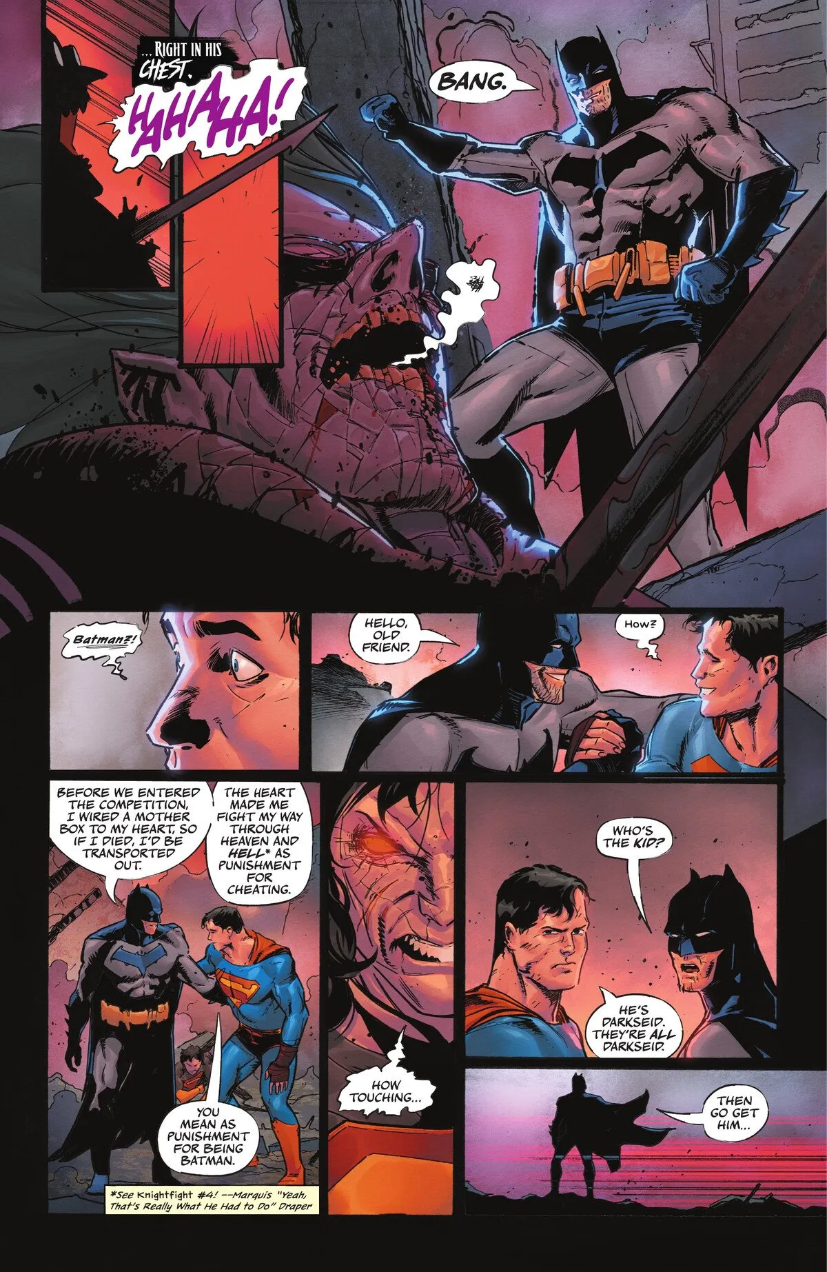 死亡はDC K.O.の第4号で起こった。スコット・スナイダー、ジョシュア・ウィリアムソン、ゼルマニコ、ハビエル・フェルナンデスによって作成されたコミック。この DC コミックス イベントは、宇宙規模のトーナメントを中心に展開し、勝者はダークサイドが使用するのと同じパワーの源であるオメガ パワーにアクセスできるようになります。勝者がこの力を利用して、ダークサイドが DC ユニバースを破壊するのを阻止できることが期待されています。