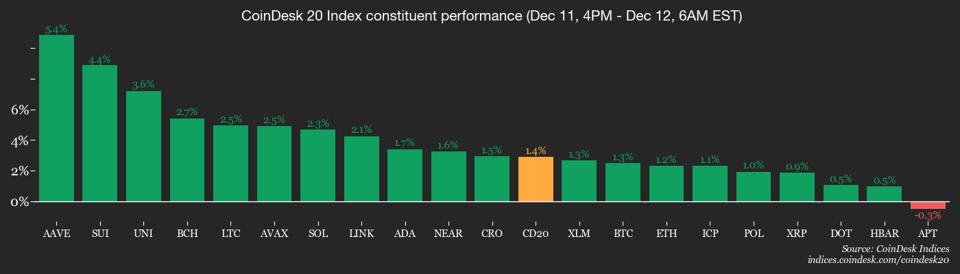 ZECやAAVEなどのコインは過去24時間で9%以上上昇し、BTCやイーサを上回りました。 HYPE、TAO、SUIは5%以上上昇しているが、KASとTRXは1%以上下落している。 CoinDesk 20 指数と CoinDesk 80 指数はそれぞれ 2% 以上上昇しており、市場全体がある程度強気であることを示しています。 🐂💸