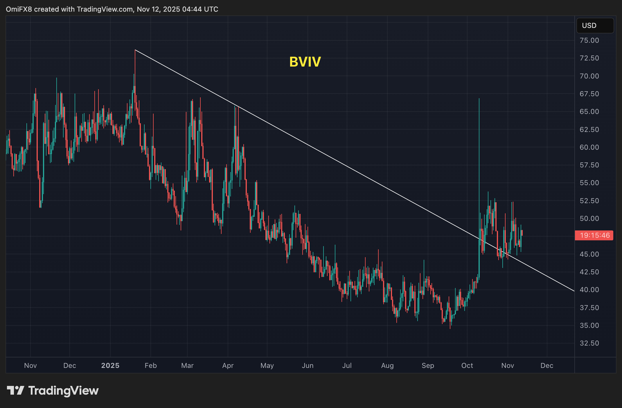 - ビットコインのボラティリティ指数(BVIV)はトレンドラインの抵抗を突破し、価格の混乱が増大していることを示している。 🚨