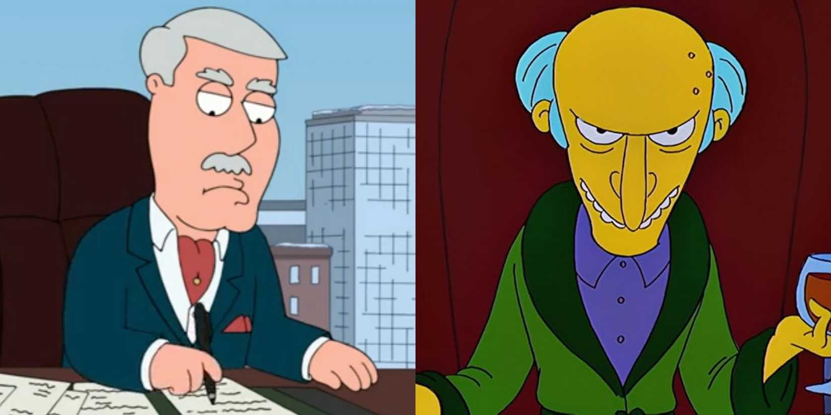 ザ・シンプソンズのバーンズ氏は、富、年齢、悪役の完璧な組み合わせであるため、陽気なキャラクターです。 ファミリー ガイ も同様のキャラクター、裕福で冷酷な実業家を特徴としていますが、異なる力関係を持っています。彼はピーター グリフィンの雇用主ではなく義父です。