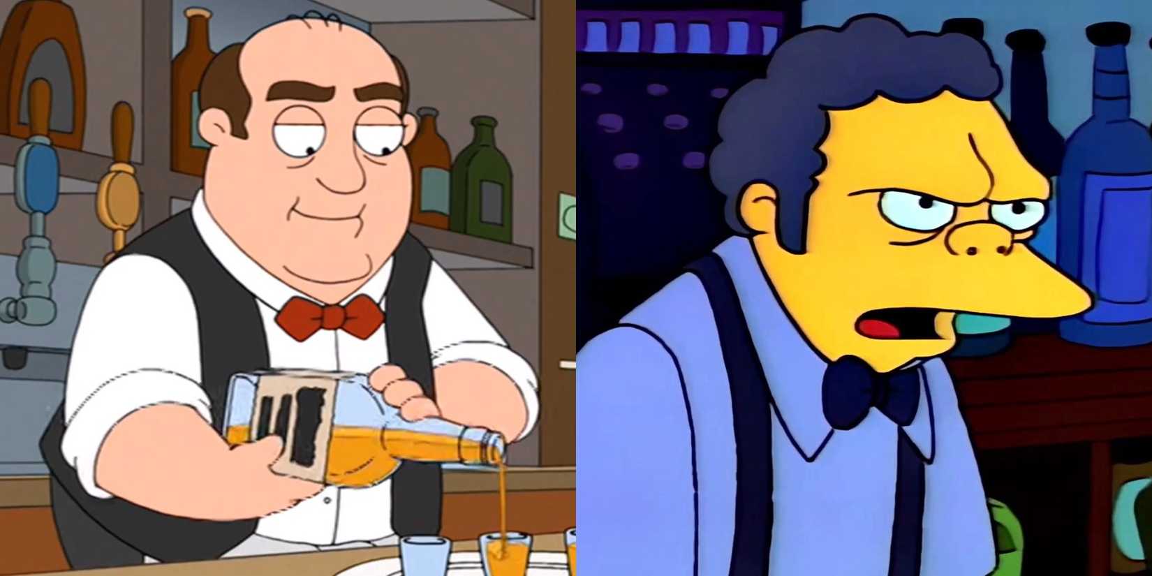 ファミリー・ ガイのホレスは、ザ・シンプソンズのモー・シスラクほど表面的には暗い人ではありませんでしたが、幸せになることはめったにありませんでした。このキャラクターは後に番組から削除され、ロイスの元ボーイフレンドであるジェロームに置き換えられました。ジェロームはモーとはまったく異なる性格です。