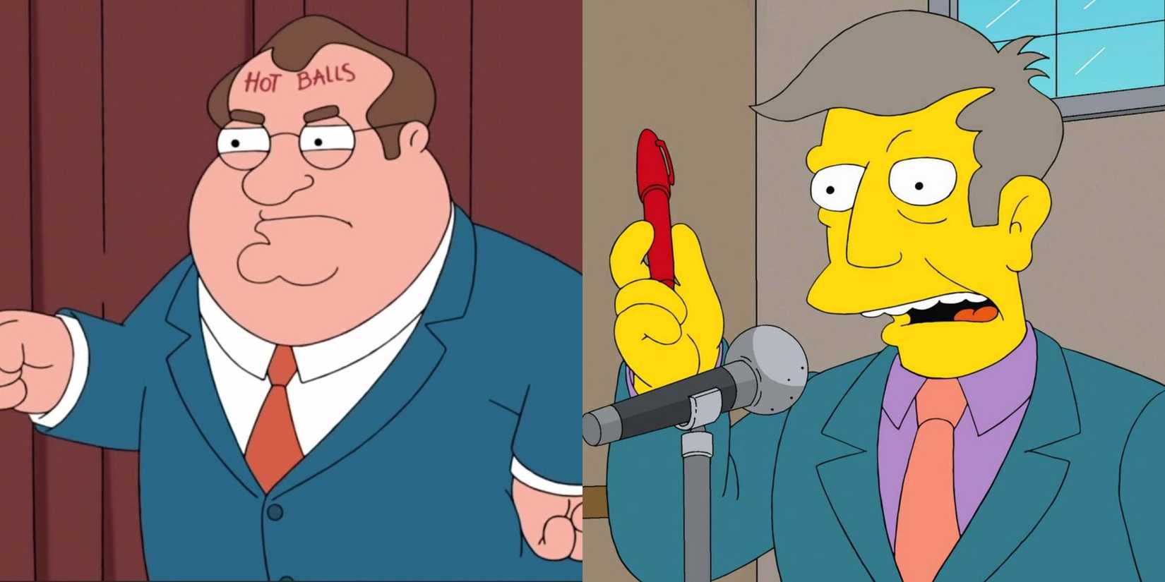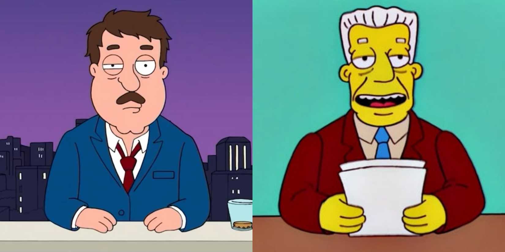 ザ シンプソンズ と ファミリー ガイ は両方とも、ニュースを伝える地元のニュース アンカーを特集しています。スプリングフィールドでは、シンプソンズはチャンネル 6 のケント ブロックマンに頼り、グリフィンズはクアホッグ 5 ニュースのトム タッカーからニュースを入手します。どちらのキャラクターも主にコメディ効果や重要な背景情報を提供するために使用されますが、いくつかの明確な違いがあります。