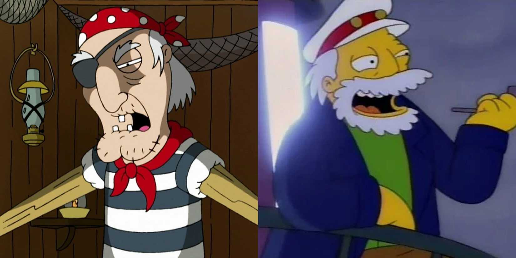 ザ・シンプソンズもファミリー・ガイも、古典的な白髪交じりの船員のキャラクター、つまり海での経験に悩まされるエイハブ船長を彷彿とさせるタイプをからかっています。 ザ・シンプソンズには、ガラスの目、常に斜視、トウモロコシの穂軸のパイプが好きということで知られる元トレジャーハンターのキャプテン・マカリスターが登場します。