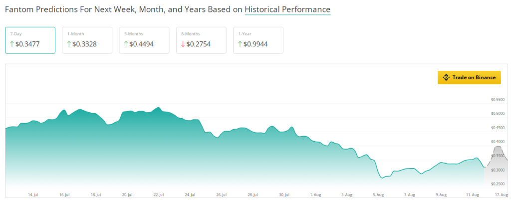今後 3 か月間で、良好な市場環境と取引活動の活発化により、Fantom の価値は約 38.87% 増加する可能性があると予測されています。 CoinCheckupのデータによると。