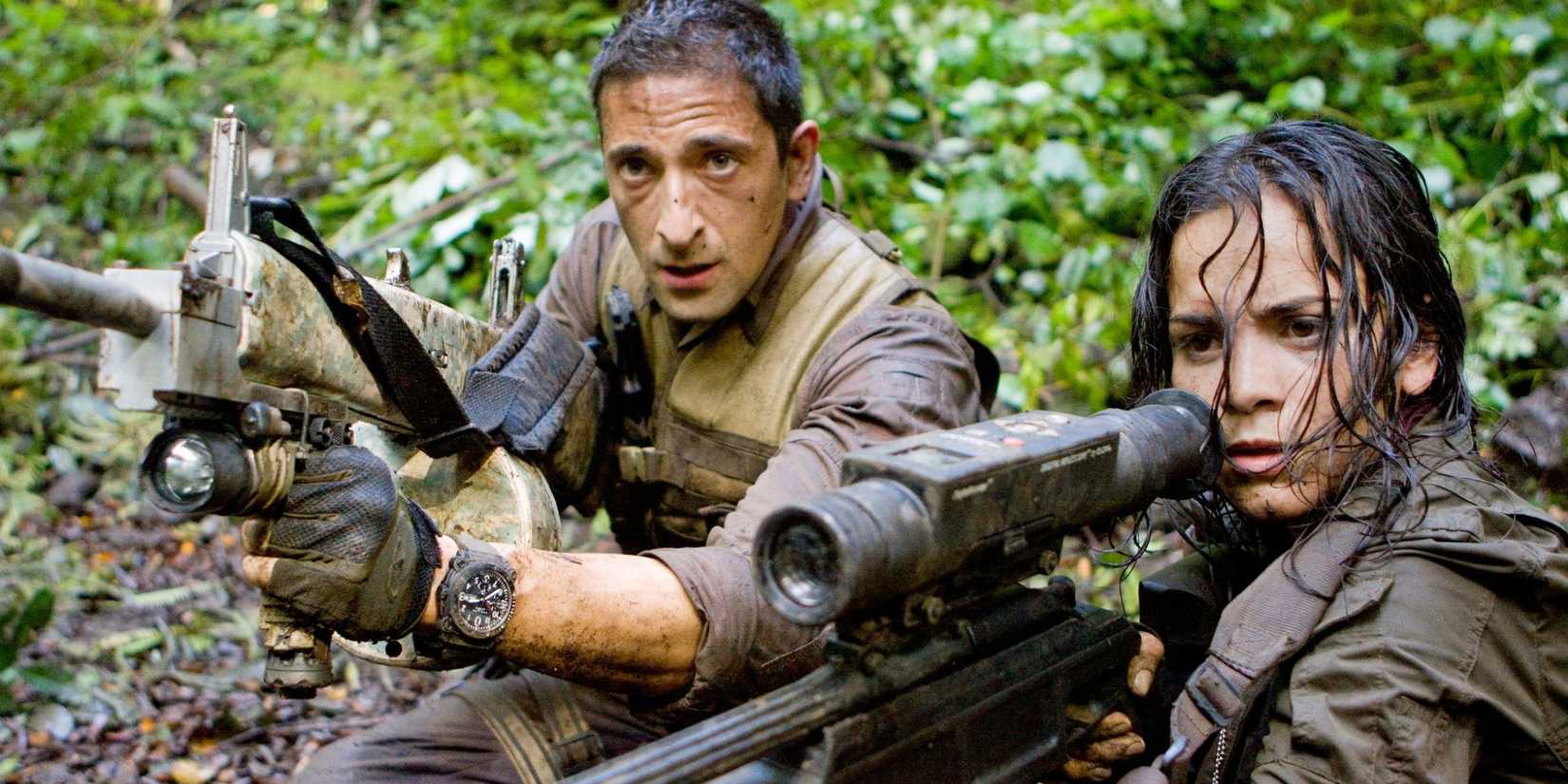『プレデターズ』では、エイドリアン・ブロディが珍しいアクション満載の役を演じ、象徴的なエイリアンの生き物に追われる危険な惑星にいる傭兵ロイスを演じています。この映画には、ローレンス・フィッシュバーン、ウォルトン・ゴギンズ、アリス・ブラガ、マハーシャラ・アリ、トファー・グレイス、ダニー・トレホなど、強力なアンサンブル・キャストが出演しています。