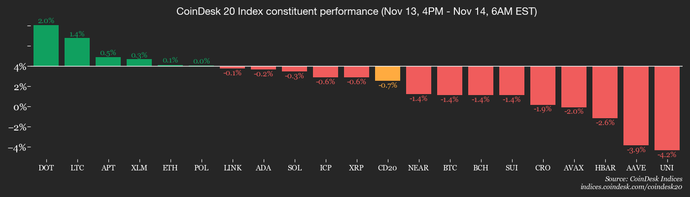 チェコ国立銀行はビットコインを購入した世界初の中央銀行となり、米国ではスポットXRP ETFがデビューし、驚異的な取引量を記録しました。当然のことながら、これはビットコインが10万ドルを下回り、龍が泣くほど劇的な仮想通貨市場の暴落と重なった。コインデスク20(CD20)指数は24時間で8.35%下落し、ダウ・ジョーンズとナスダックもそれぞれ1.65%と2.29%の下落で加わった。クラシック。