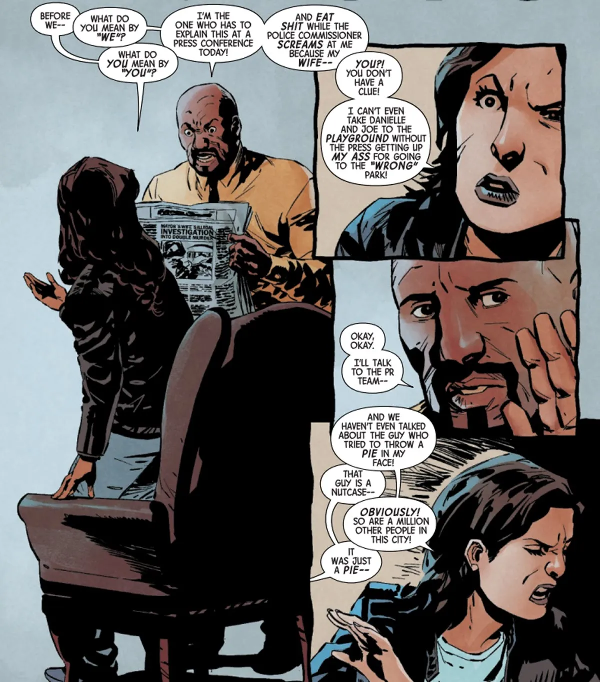 彼女がニューヨーク市のファーストレディであることに苦労していると言っても過言ではない。彼女はルーク・ケイジの妻としてしか知られていないことに不満を持っており、ジェシカ・ジョーンズは特にパパラッチが常に彼女を尾行し、探偵の仕事を妨害することにイライラしています。