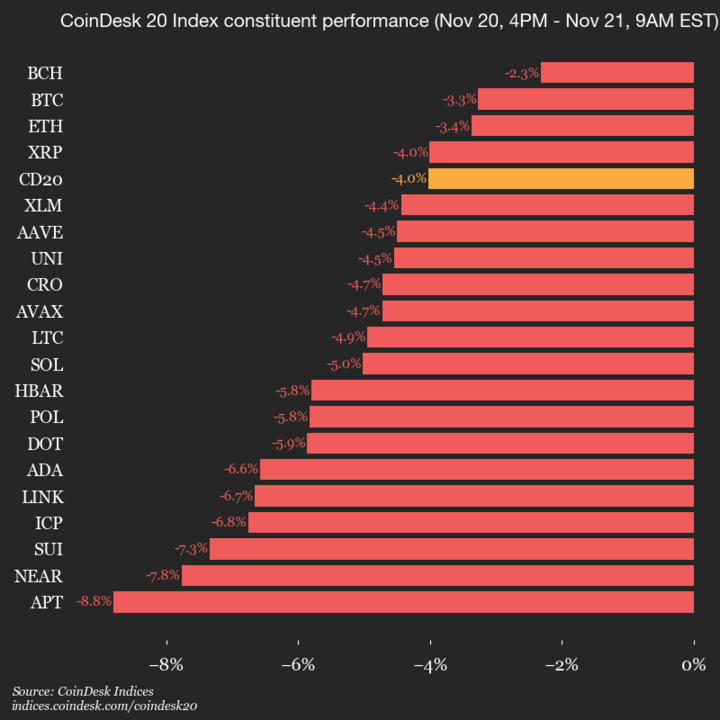 CoinDesk 20は、世界中の複数のプラットフォームで取引される広範なインデックスであり、宇宙で唯一不変のものはカオスであることを私たちに思い出させ続けています。あるいは、ヒッチハイカーズガイドに書かれているように、「パニックにならないでください」。 APT または NEAR を保持している場合を除きます。そうなると、少しパニックになるかも知れません。 😱