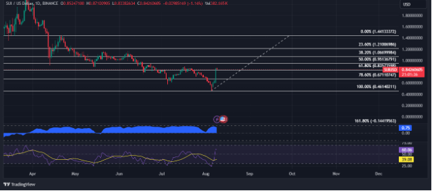 現在、SUIの価格は歴史的な安値にあり、強気派は5月から6月にかけて価格が下落した後、勢いを取り戻すのが難しいと感じている。この継続的な状況は投資家とトレーダーの両方に懸念をもたらしていますが、将来的に市場が回復すれば、SUI への投資から大きな利益が得られる可能性があります。しかし、市場が長期的に回復し続ければ、SUIでさらに多くの利益が得られる可能性があります。