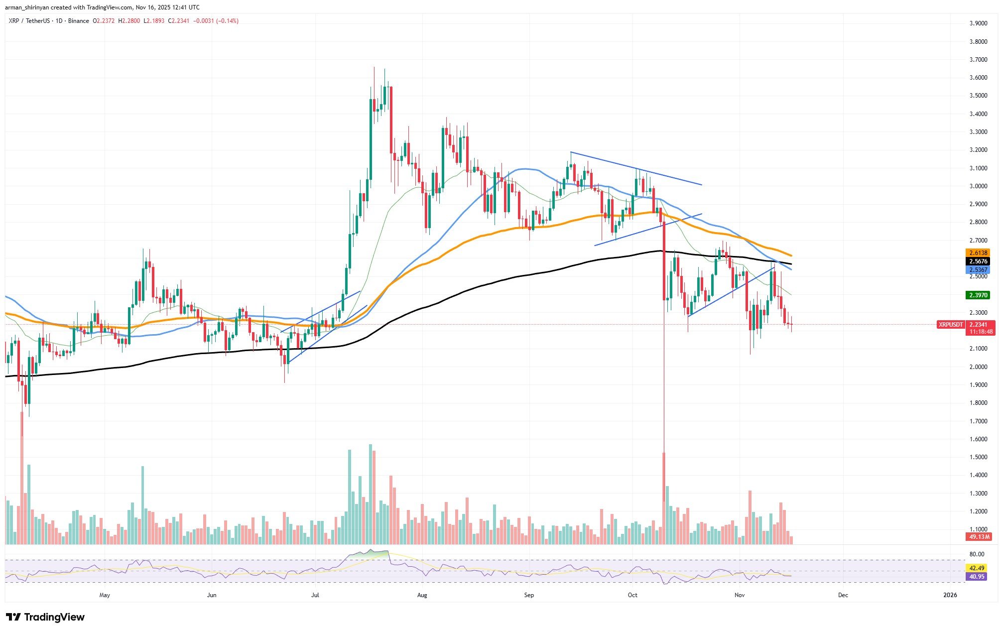常に威厳のあるビットマイン会長のトム・リー氏によると、10月10日の清算と、米連邦準備制度理事会が12月に利下げを決定するかどうかという根深い疑問が相まって、貧しい仮想通貨市場はかなり動揺しているという。同氏は、売り手に「疲弊」の兆しがあるとあえて示唆したが、売り手が単に疲れているだけなのか、単にアイデアが枯渇しているのかはまだ分からない。彼のテクニカル分析は、グラフをよく見つめることを含んでいると思いますが、間もなく底が来るかもしれないことを示唆しています。なんてスリル満点でしょう! 🎢
