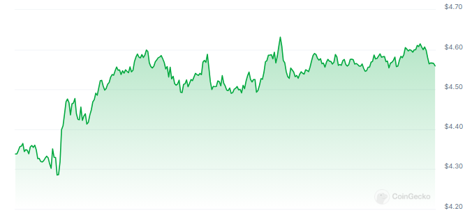 現在、DOTは4.61ドルの壁を超えようと努力しており、この上限を強固なサポートレベルに変えることを目指して昨日の傾向を再現しています。しかし、市場が現在、投資家やトレーダーが経験している一時的な下落圧力に傾いていることを考えると、この進展は弱気派によって妨げられる可能性がある。