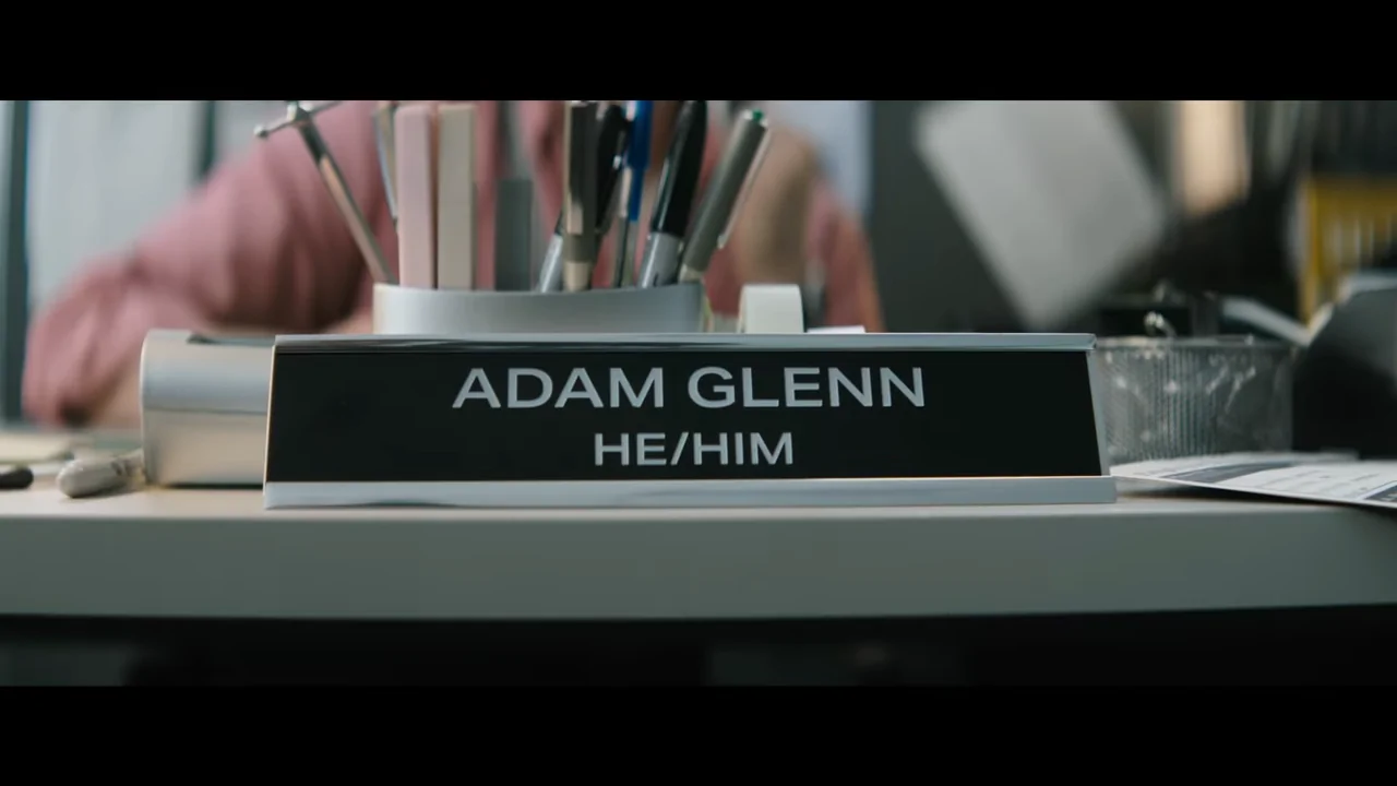 予告編は、アダム王子(ニコラス・ガリツィン)が、話すトラや宇宙船、さらには信じられないほどの力を与える魔法の剣など、何でも可能な世界の出身であることを語るところから始まります。次に、故郷の惑星エターニアから地球に送られた若いアダムが登場します。彼は成長して、ピンクのシャツと彼の代名詞が記されたネームプレートでわかる、やや幻滅した人事マネージャーになりました。