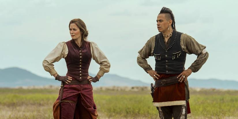 エミリー・ブラントは、このミニシリーズで、息子の死の復讐を求めて 1890 年にアメリカ西部へ旅する女性、レディ・コーネリア・ロックとして主演します。その途中、約束の土地を手に入れるために旅をしていた米軍のポーニー偵察隊員、イーライ・ウィップ(チャスケ・スペンサー)に出会う。