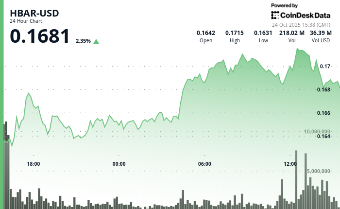 ヘデラのHBARトークンは、かつては0.1669ドルだったものの、神聖な0.1716ドルを突破しようとする勇敢な(そして運命の)試みの後、現在は0.1697ドルまで下落している。ダンスは0.0089ドルの不安定なレンジで展開され、買い手たちは溶けるアイスクリームコーンに向かう幼児のように勢いにしがみついていた。 5.2% のスイング – 後悔のジェットコースターを嫌いな人がいるでしょうか? 🎢