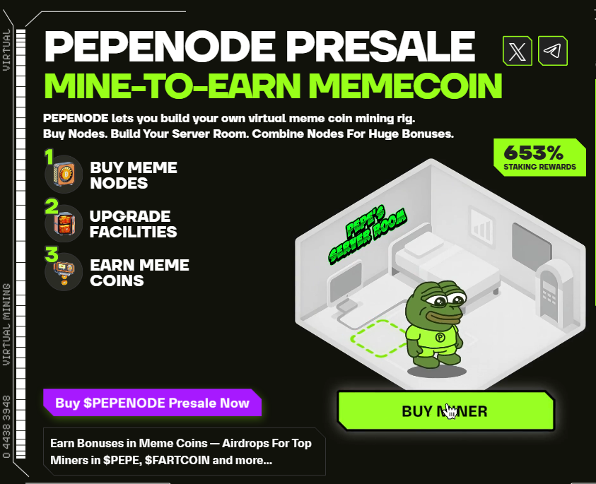 そしてペペノードは?それは今年の弱者の物語です。プレセールが 196 万ドル、APY が 653% というこのプロジェクトは、未来が単なるミームとマイニング装置の集まりではないかと思わせるようなプロジェクトです。 🧠