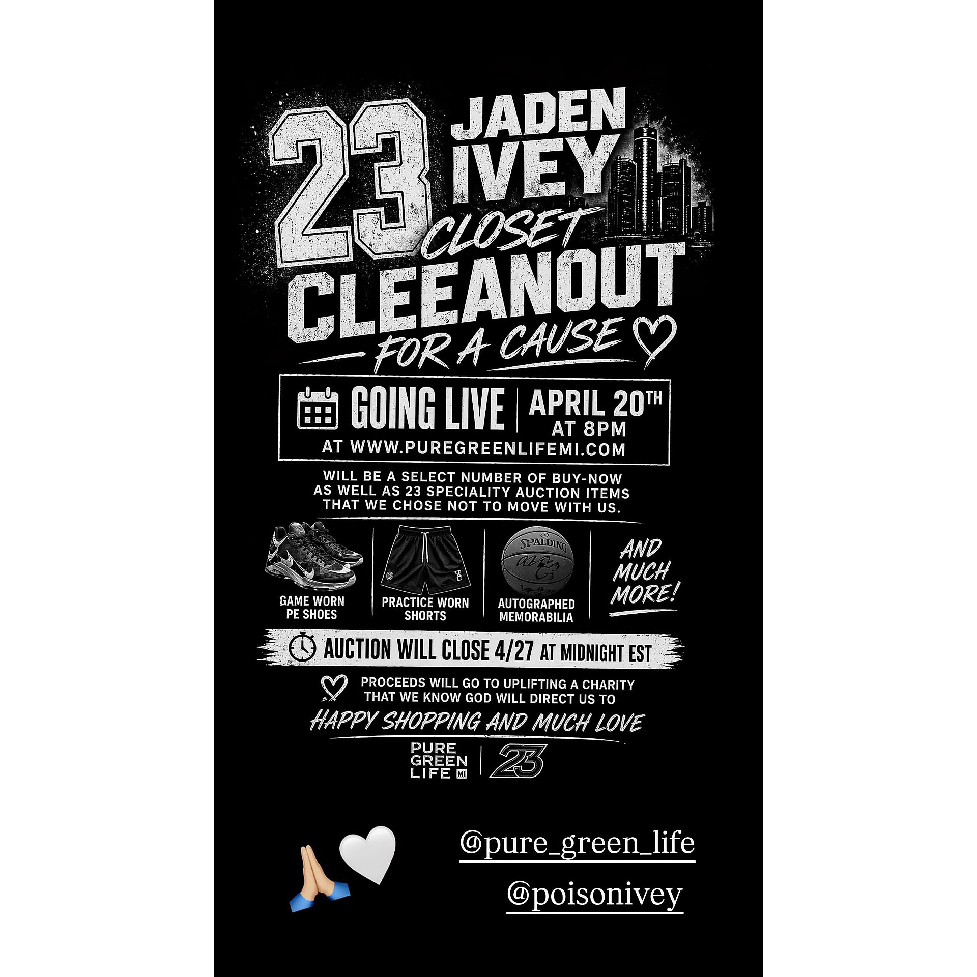 熱心なサポーターとして、オークションが開催されたことをお知らせできることに興奮しています。入札は 4 月 27 日月曜日の東部時間午前 0 時まで行うことができます。本当に特別なのは、集まったお金はすべて慈善団体に寄付されるということです。私たちは、支援するのに最適な組織を選ぶ際に神が導いてくださると信じています。