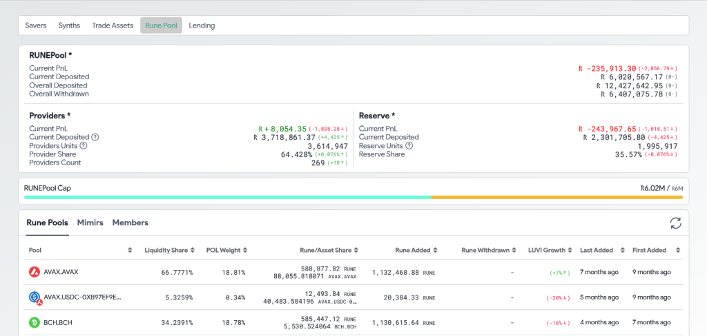 7月末頃、THORChainは流動性への貢献を動機付ける追加ツールとしてRUNEPoolを発表しました。これにより、ユーザーは THORSwap または THORWallet プラットフォームを介して、この機能を通じて一緒にプールされたさまざまなトークンのコレクションに RUNE トークンを簡単に預けることができます。