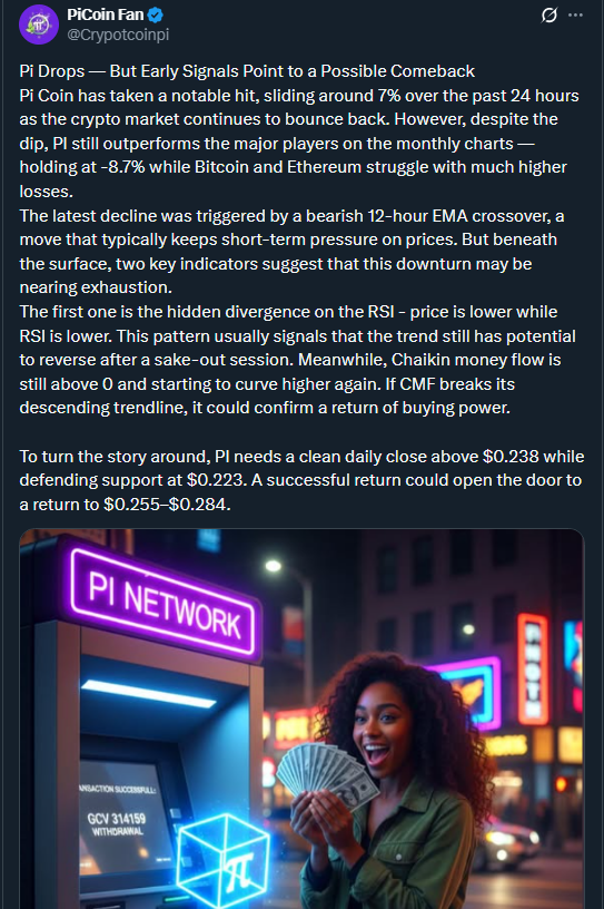 指標は「使い果たした」と言っていますが、市場は私たちに推測を続けるのが大好きです。 Cryptopi は、Pi が主要な仮想通貨関連商品を毎月上回っていると主張しているため、もしかしたら、もしかしたら、もしかしたら、希望があるかもしれない、あるいは単に礼儀正しいだけなのかもしれません。円周率は -8.7 ですが、ビットコインとイーサリアムは隅っこで忙しく泣いています。 😢
