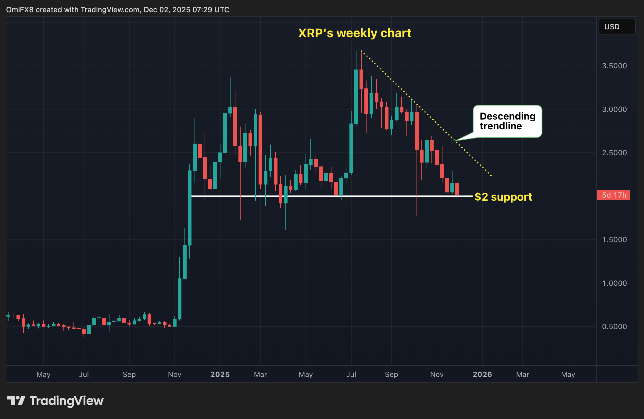 - XRPは2.00ドルの瀬戸際で揺れ動いている。うまくいくでしょうか? 😬