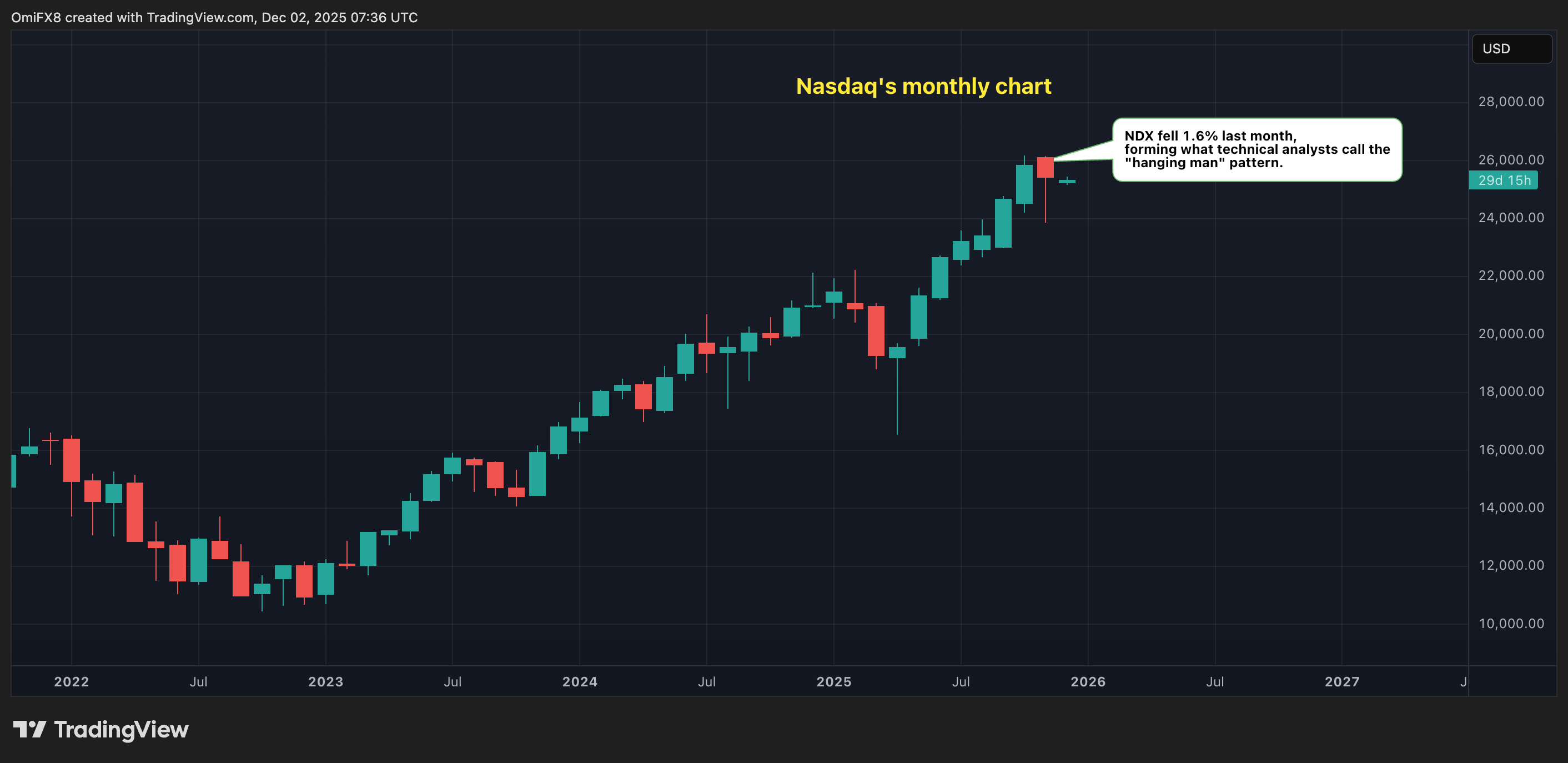 ナスダックに関しては、ハイテク投資家が望むほど状況はバラ色ではないようだ。チャートは文字通り「二日酔い」の雰囲気を和らげている。 「ハンギングマン」ローソク足パターンと呼ばれるものがあります。かわいい名前ですよね?西部劇で起こり得る最悪の出来事のように聞こえます。ナスダックの場合、この小さなローソク足は赤旗を振っており、市場が勢いを失っている可能性があることを示しています。それは要するに、ナスダックが「はい、今夜のテキーラはもう十分ですよ、みんな」と言っているようなものです。