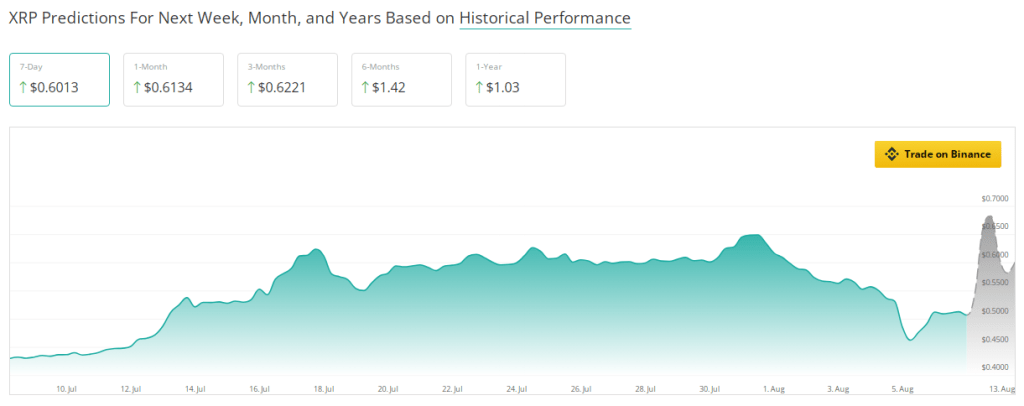 短期的には、XRP は有望な中期的な見通しを示しています。 CoinCheckup の調査結果は、次の四半期中に 22.68% 増加する可能性があることを示唆しています。この楽観的な見通しは、仮想通貨に対する投資家の信頼と関心の高まり、そしてより広範な市場動向と一致しています。