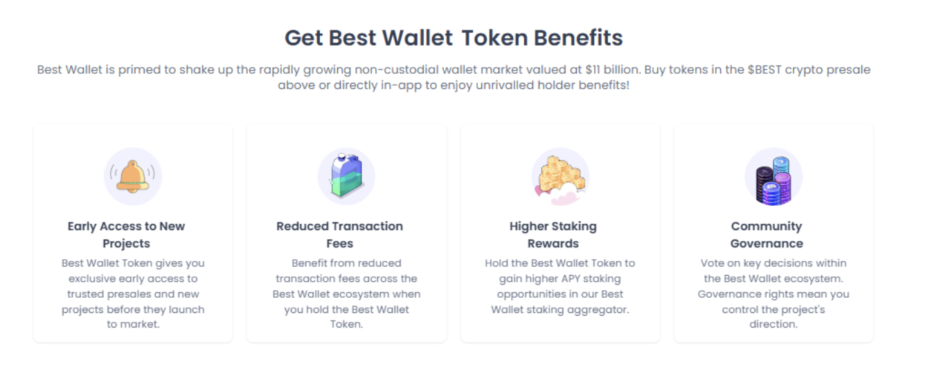 ベスト ウォレット トークン ($BEST) 所有者は、早期プレセールの機会、取引手数料の割引、プラットフォーム上で取り上げられるプロジェクトに対するガバナンス権への独占的なアクセスを取得します。これは、デジェンズでいっぱいの最もホットなクラブへの VIP パスであり、用心棒はスマートな契約です。 (スマートコントラクトの用心棒ほど「私はエリートです」と言えるものはないからです💸)